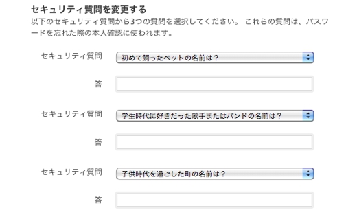 修復用メールアドレスも直して、質問も新しく設定します。日本語の質問が選べるようになっていました!これで一安心です。